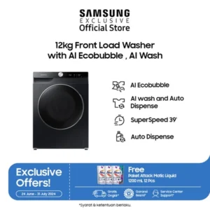 2. Samsung AI EcoBubble™ Washer – Memadukan teknologi AI dengan EcoBubble, mesin ini mampu mencuci pada suhu rendah untuk menghemat energi, tanpa mengurangi kinerja pembersihan. Tersedia di Shopee untuk pengalaman mencuci yang lebih efisien.